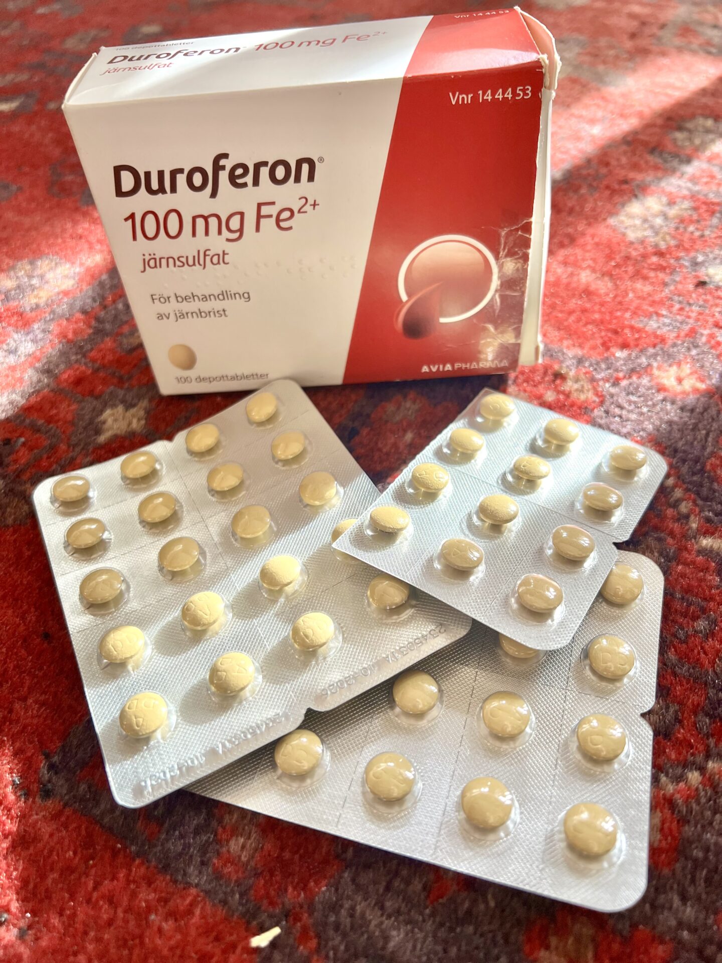 Järntabletter. 51 stycken kvar. Bäst före oktober 2026.