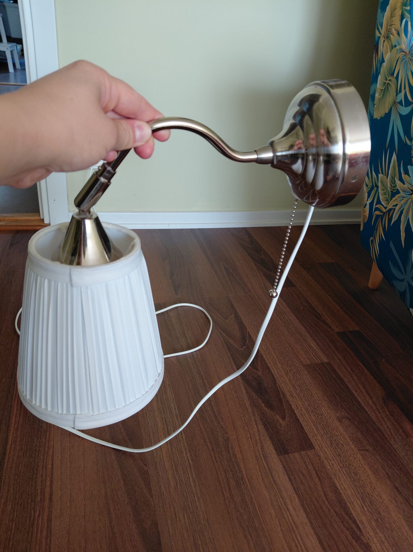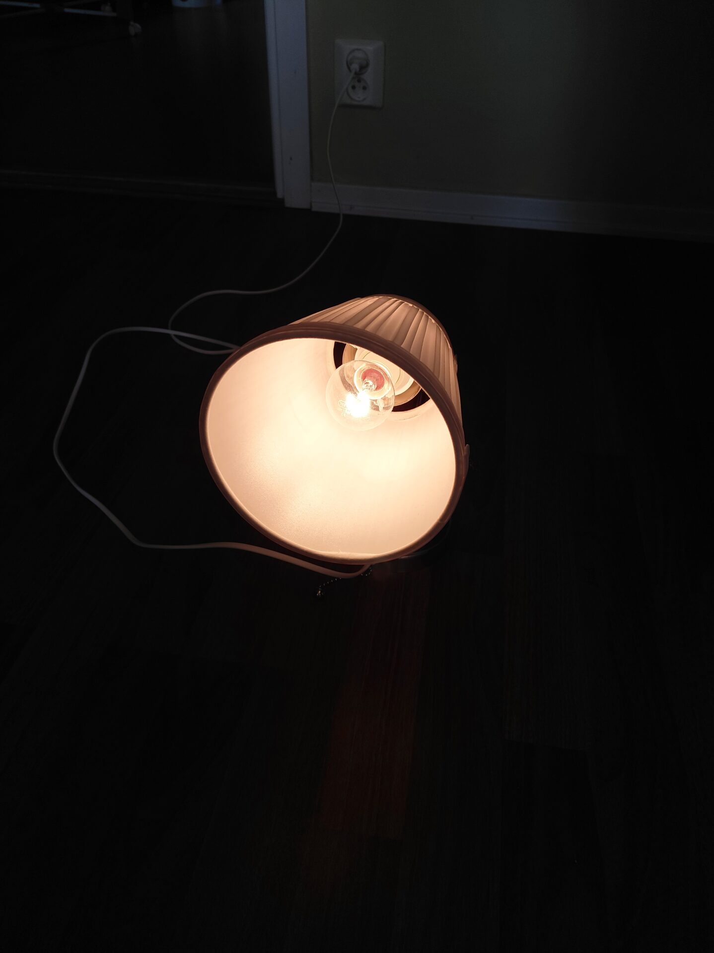 Lampa som kan fästas på väggen. Från Ikea, modellen heter ”Årstid”.